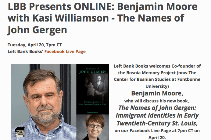 Very much looking forward to an online book discussion at Left Bank Books. Kasi Williamson, Associate Dean for Arts and Sciences at Fontbonne University, will be joining me. For more information, visit their webpage and Facebook page for the event.