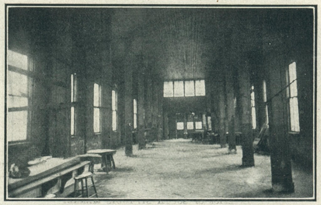 I have found nine photographs of the market hall (or parts of it) that were taken between 1897, when the market was rebuilt, and 1928, when it was torn down. Two date from 1910. One of these photographs depicts the original market hall building’s interior, photographed looking east, towards the entrance. Though the emptiness is apparent, the windows and inflowing light are impressive. An accompanying photograph (reproduced at the top of this blog post) depicts the facade and north wall of the market hall, with a horse and wagon parked on the macadam street out front.